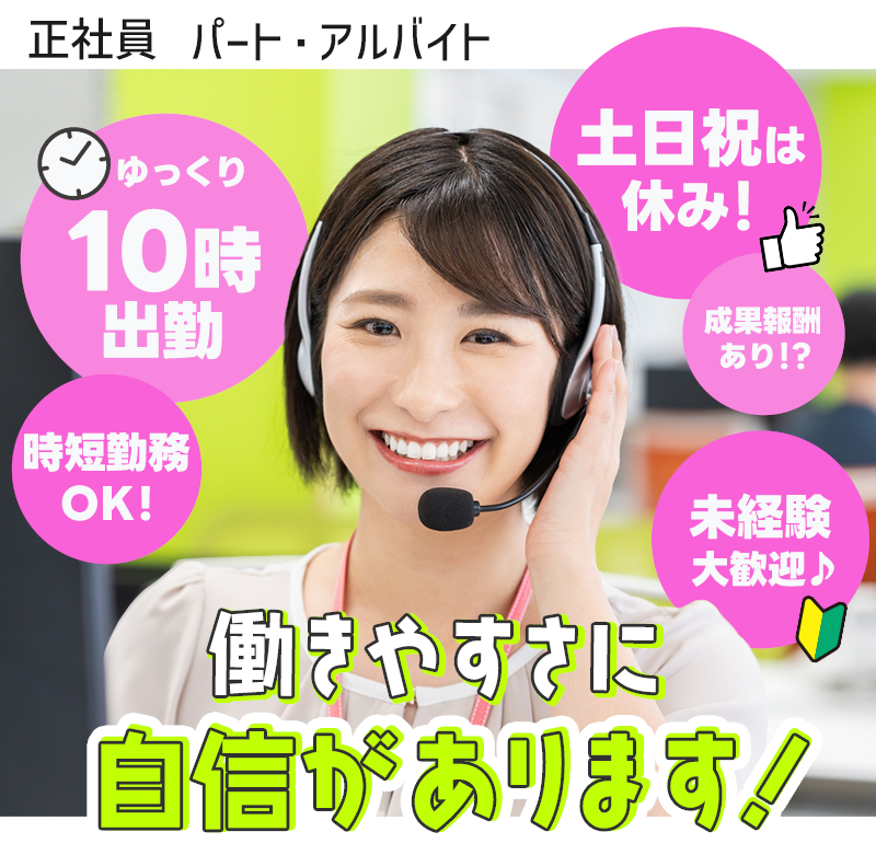 募集要項 雇用形態 アルバイト (正社員も募集中!) 仕事内容 コールセンターアポイント取得業務 給与 時給1,045円〜 勤務時間 10時〜17時 休日 土日祝日 福利厚生 社員登用あり/インセンティブあり/交通費支給 会社概要 会社名 株式会社アクトライズ 所在地 〒814-0171福岡市早良区野芥4-45-55 SAI ARCHI BLDG 3F